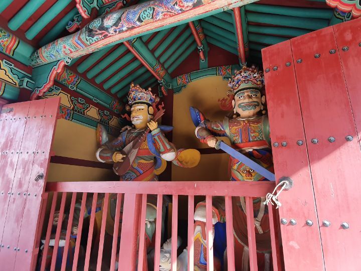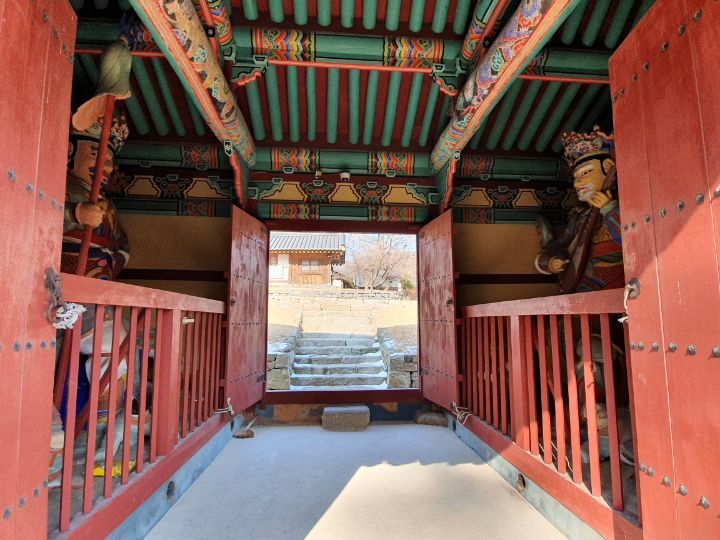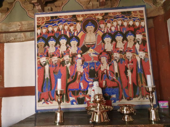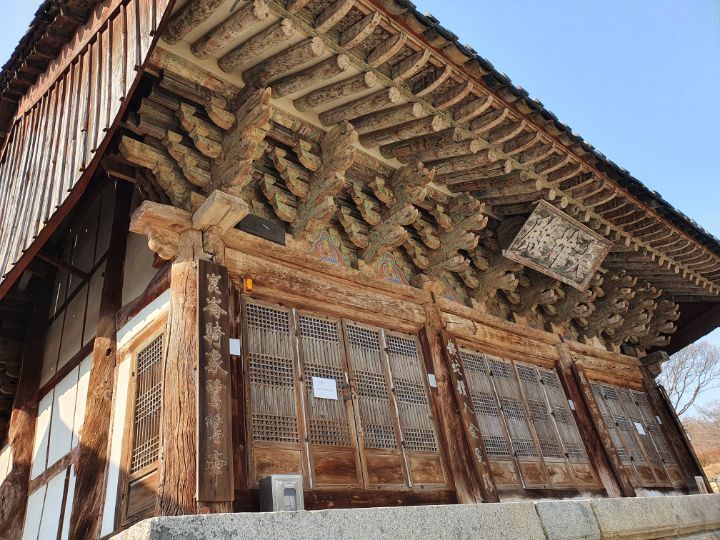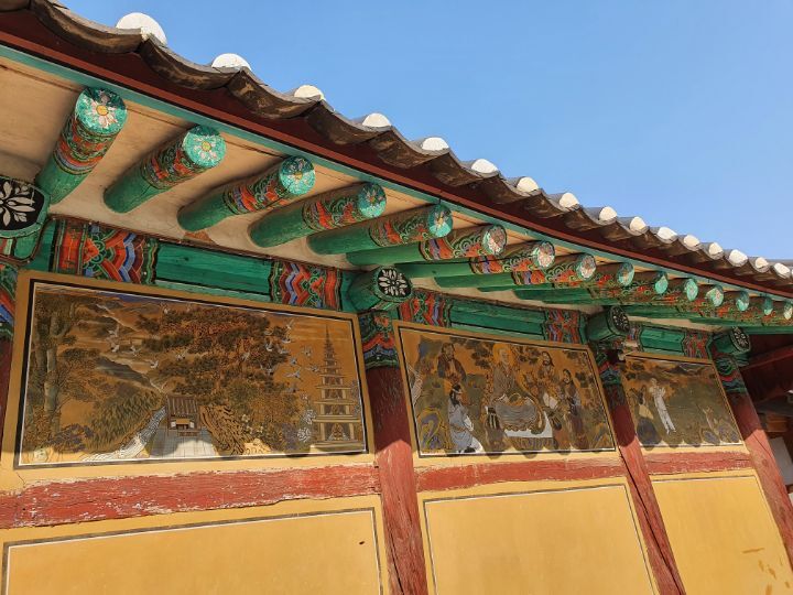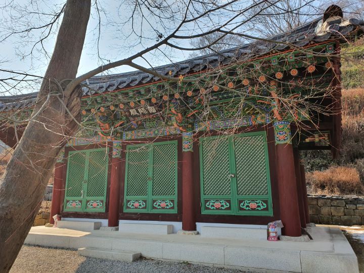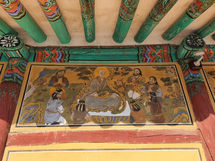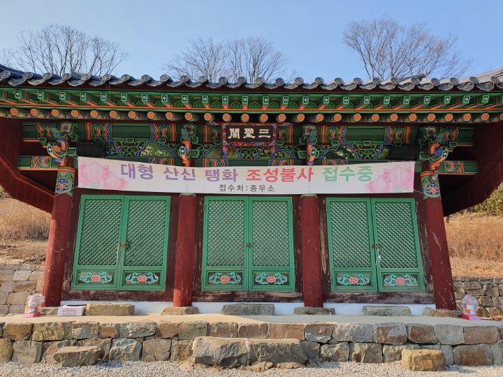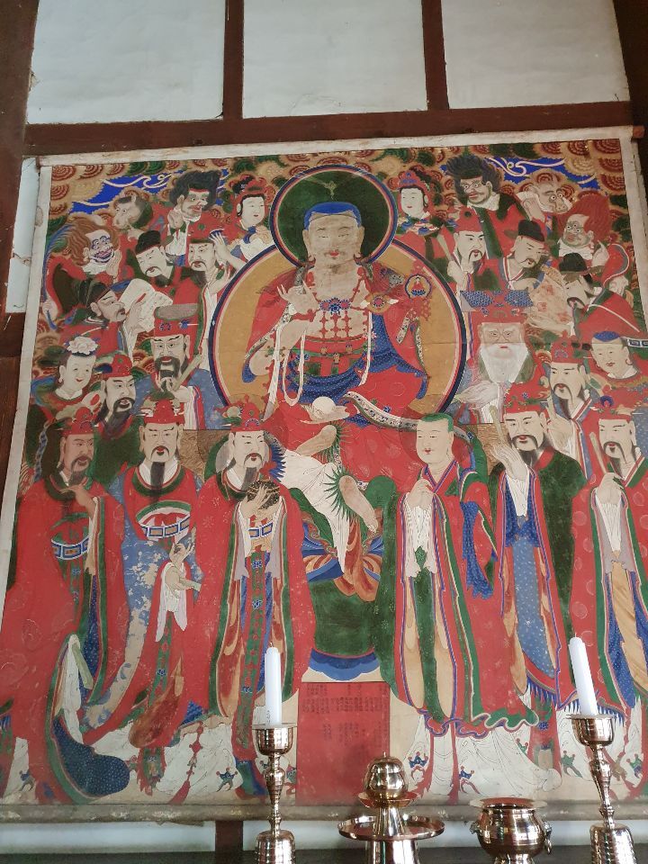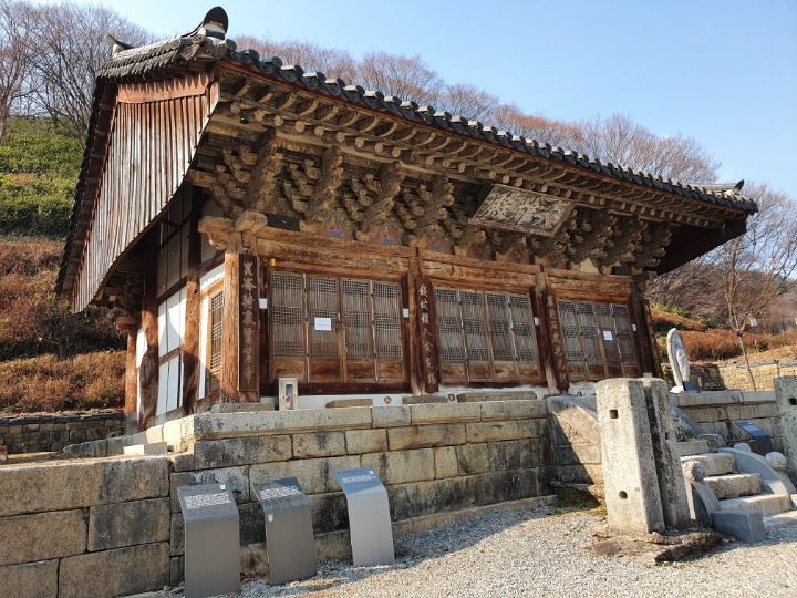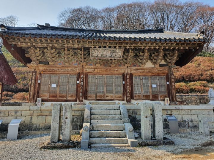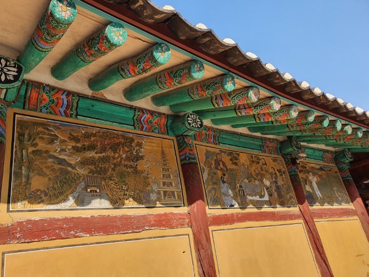 명부전. 명부전에는 병해스님과 임꺽정 의형제, 혜소국사와 일곱도적, 궁예 활쏘기 등의 전설이 그림으로 표현되어 있다.