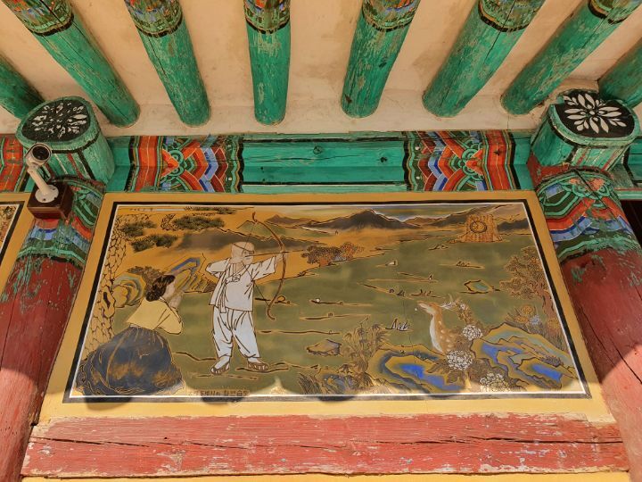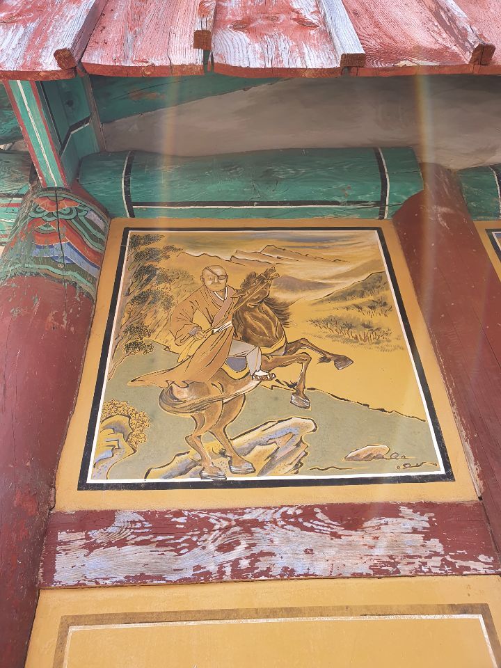 말타고 활쏘기하며 무예를 익히는 궁예. 궁예는 이곳 칠장사에서 13세?까지 무예를 연마했다고 한다.