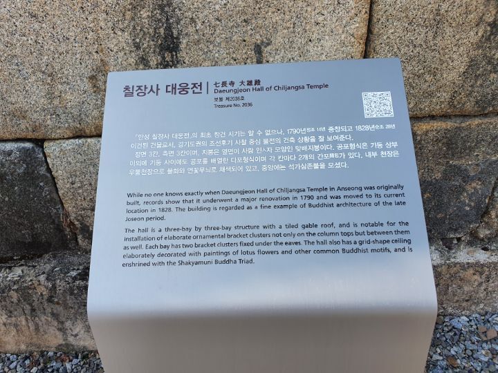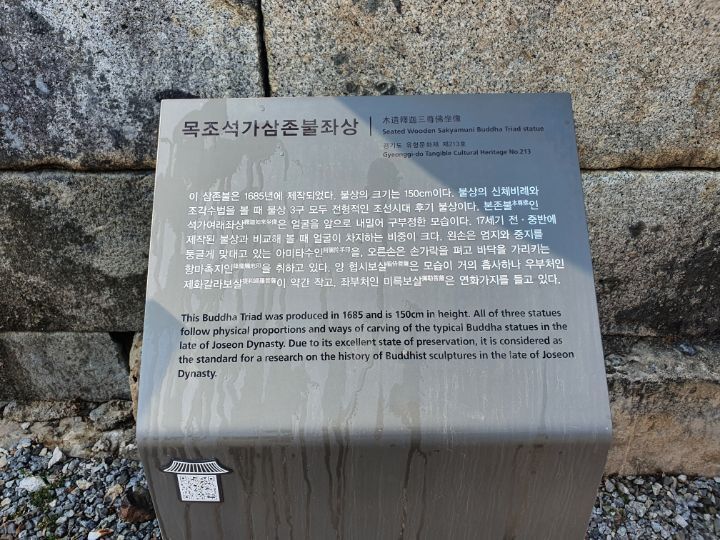 1790년(정조 14년) 중창되고 1828년(순조 28년) 이건된 건물로서, 경기도권의 조선후기 사찰 중심 불전의 건축 상황을 잘 보여주고 있어 역사적, 학술적 가치가 크다.