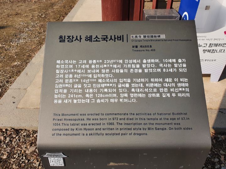 1060년(문종 14)에 세워진 김현(金顯)이 지은 비가 경기도 안성시 칠장사에 남아 있다. 시호는 혜소(慧昭)이다.(다음백과 전재)