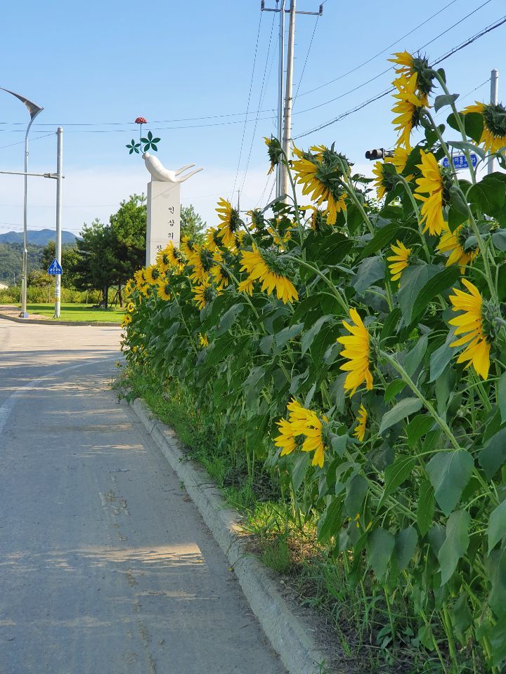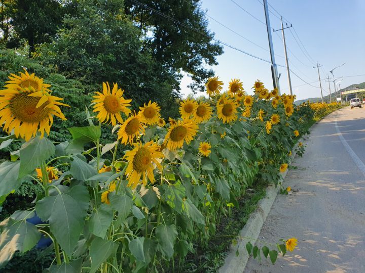 길가 해바라기는 가로수가 아니라 가로화(街路花)다.