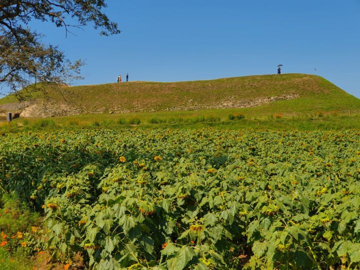 성벽 꼭대기에 올라 다시 마을쪽을 보면 해바라기 멀리 성벽의 보호를 받는 편안한 모습이 보인다.