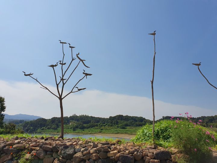 솟대. 임진강 쪽으로 솟대를 가득 세워 놓았다. 그것도 가지가 여럿 뻗어나간 풍년 든 솟대다. 북한 사람들의 염원도 함께 담은 것 같다. 모두의 염원, 그것은 성과 강을 넘는 통일의 염원이 아니겠는가.