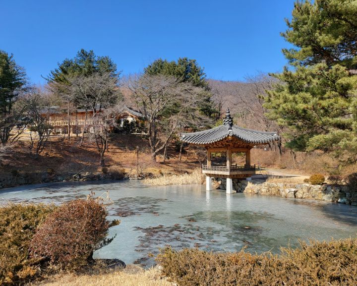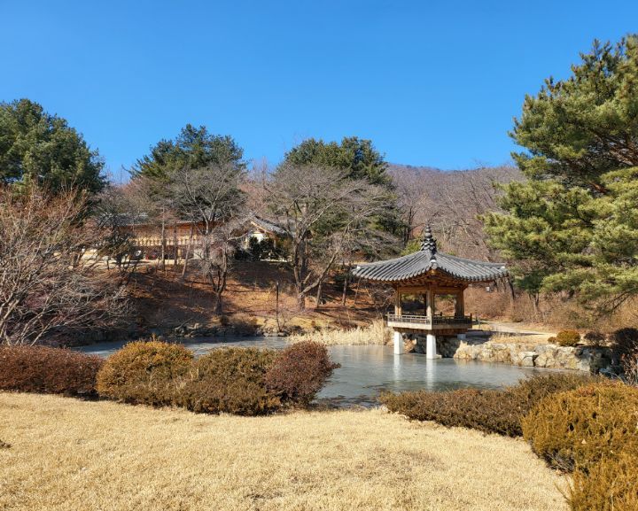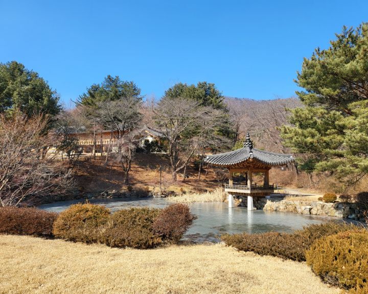한국학중앙연구원에서 가장 아름다운 학의정(鶴儀亭) 주변. 도서관과 대학원 사이에 있다. 연못과 팔각정이 전형적으로 선비의 사유공간을 구성한다.