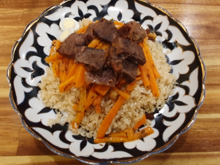 우즈벡 말로 오쉬, 러시아어로 쁠롭이라고 하는 소고기볶음밥이다. 우즈베키스탄 사람들이 생일날 등 특별한 날은 반드시 먹는다는 음식이다.
