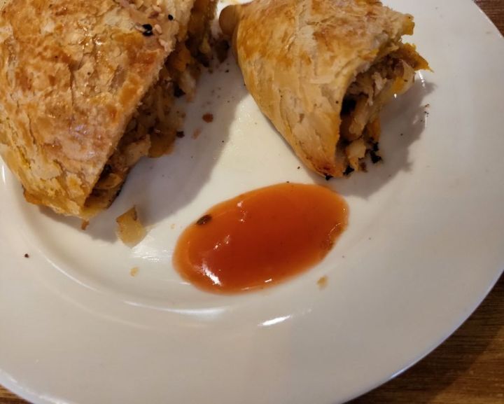삼사. 일명 고기빵으로 부르는데 이번에는 고기 없는 호박속 빵이다. 고기와 비슷한 기분이 난다. 호박 외에도 여러가지 재료가 들어 야채빵과 같은 느낌을 준다. 그러나 구운 빵이라 베이커리에서 먹는 고로케와는 완전 식감이 다르다. 노릇하게 구워진 빵이 속과 어울려 고소한 맛을 낸다.