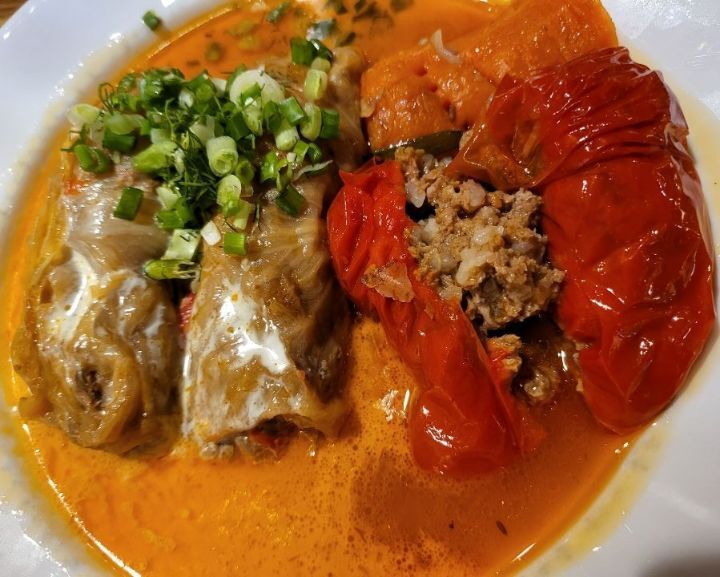 음식 이름에는 양배추와 소고기만 들어가 있지만, 파프리카에 든 소고기가 압권이다. 생소한 조합이다. 소고기에 파프리카맛이 강하게 배어 있다. 신기하지만 개운하고 매력적인 풍미다. 수프에 담겨 나오는데, 수프 맛도 일품이다.