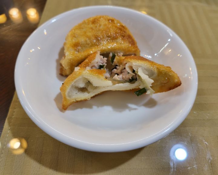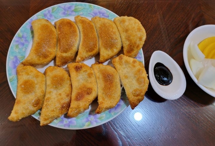 한쪽은 바삭하게 다른 한쪽은 부드럽게, 튀긴 것이 아니라, 기름을 충분히 두르고 구워 만든다. 그야말로 군만두다. 만두피의 쫀득쫀득한 식감이 고소한 맛과 어우러져 높은 맛을 낸다.
