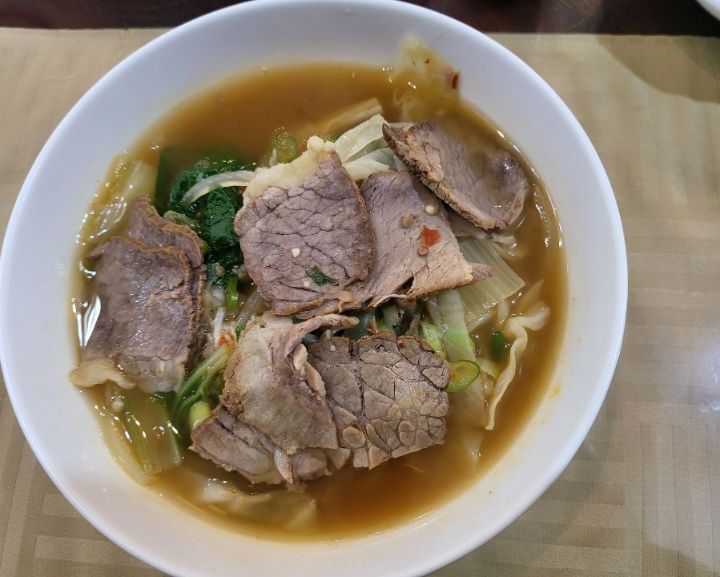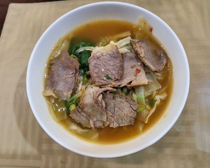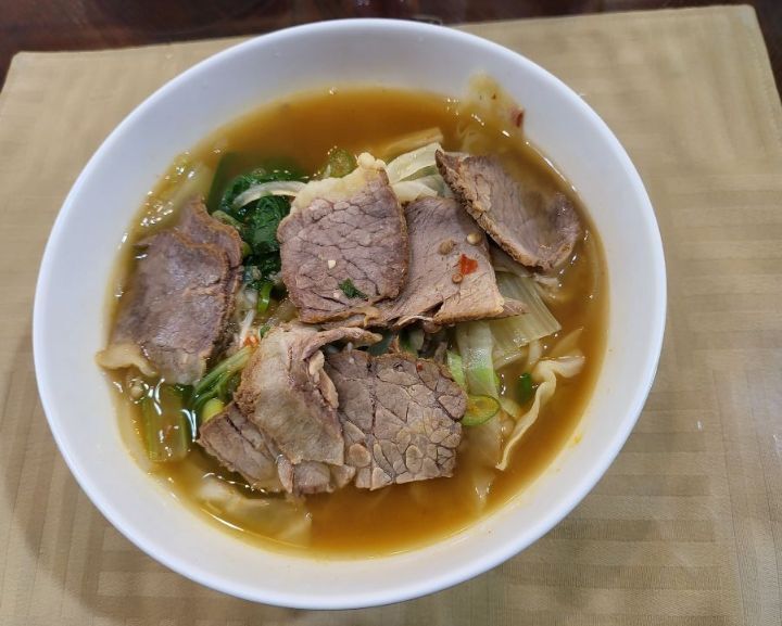 소고기탕면. 만두를 빼면 이 집의 대표음식이다. 뇨러우미엔, 대만의 대표음식으로, 대만 이름을 걸고 중국에 진출한 음식, 그리고 면이 유명한 란저우의 라미엔으로 조리되는 음식이다. 그러나 중국 사람들은 란저우 국수보다 대만식 국수를 더 좋아한다. 대만식이라는 간판을 대문짝만 하게 걸어놓고 영업을 한다. 대만에 가면 면의 대명사로 어느곳에서나 1번음식으로 자랑하는 보편적인 음식이 뇨로우미엔, 소고기탕면이다. 대만 유학생들에게는 추억의 음식이기도 하다.