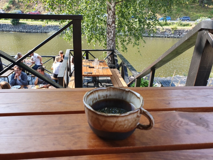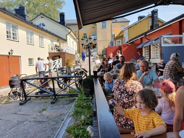 포르보 강가에 위치해있어 강과 강건너 풍광이 한눈에 들어온다. 목조 테이블과 포르보 마을과 강이 어울리는 풍광이 환상이다.