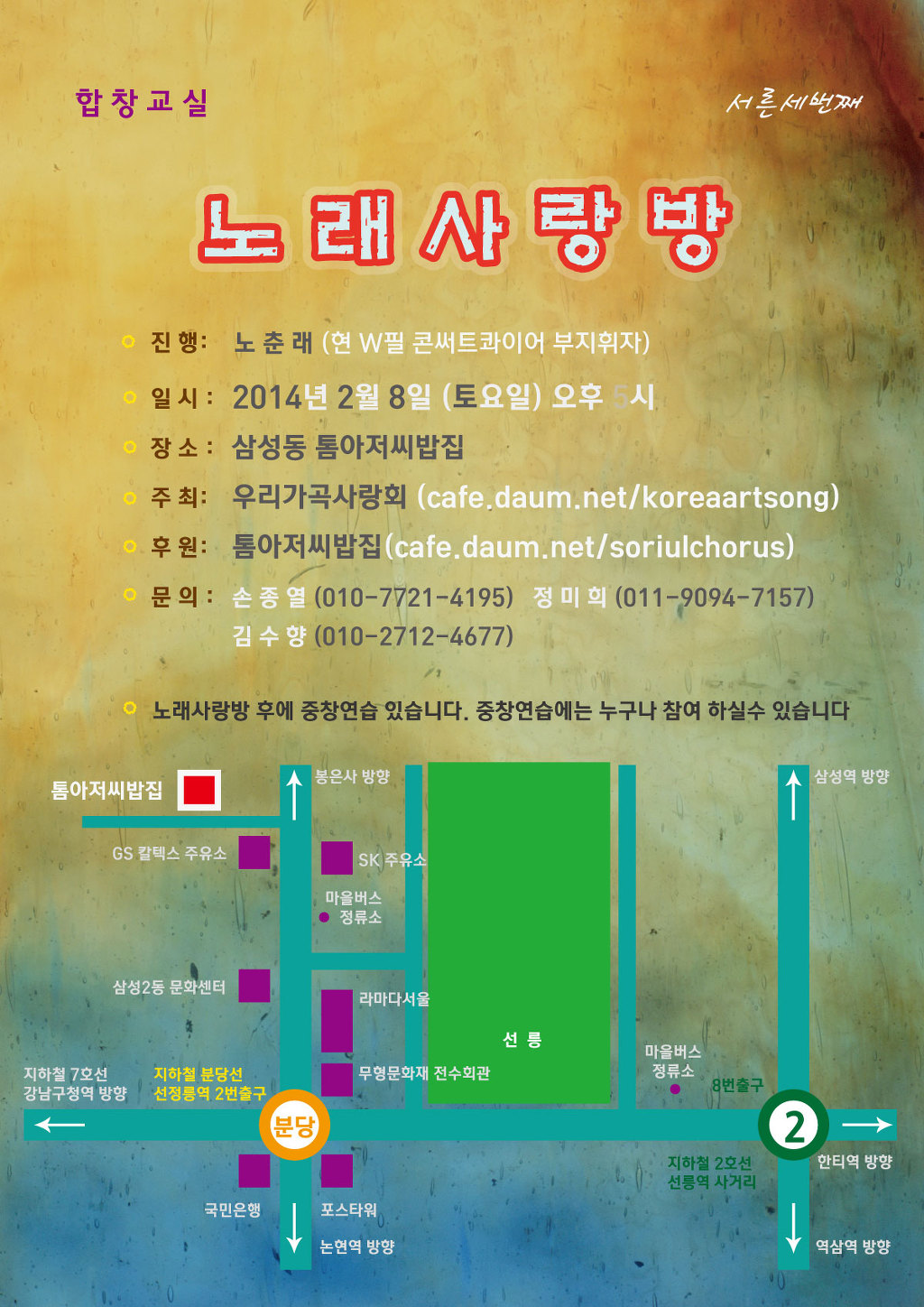 [스크랩] [홍보]2월8일 33회 노래사랑방 엽니다 작성자손종열|작성시간14.02.06|조회수17 목록 댓글 0 글자크기 작게가 글자크기 크게가 다음검색 스크랩 원문 : 우리가곡사랑회 현재 게시글 추가 기능 열기 북마크 공유하기 신고 센터로 신고 댓글 댓글 0 댓글쓰기 답글쓰기 댓글 리스트