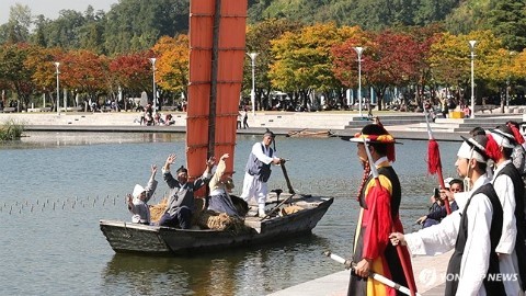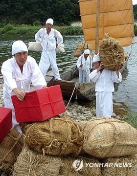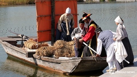 마포나루 황포돛배 재현 조선 시대 새우젓과 소금을 싣고 나루를 오가던 모습 <연합뉴스 제공>