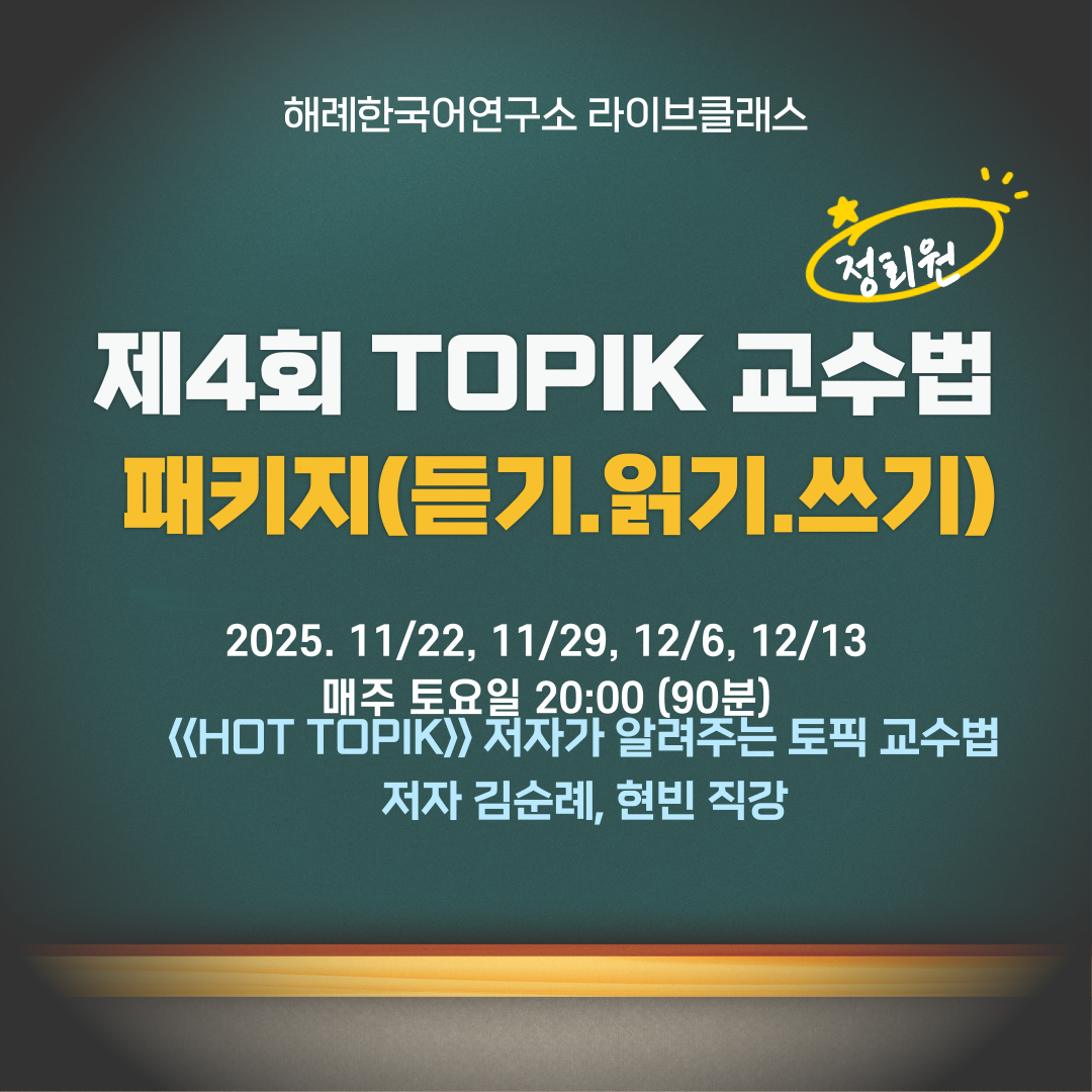 11μ 29μΌ(ν )/ 12μ 6μΌ(ν )TOPIK μ°κΈ° κ΅μλ² (2νμ°¨)