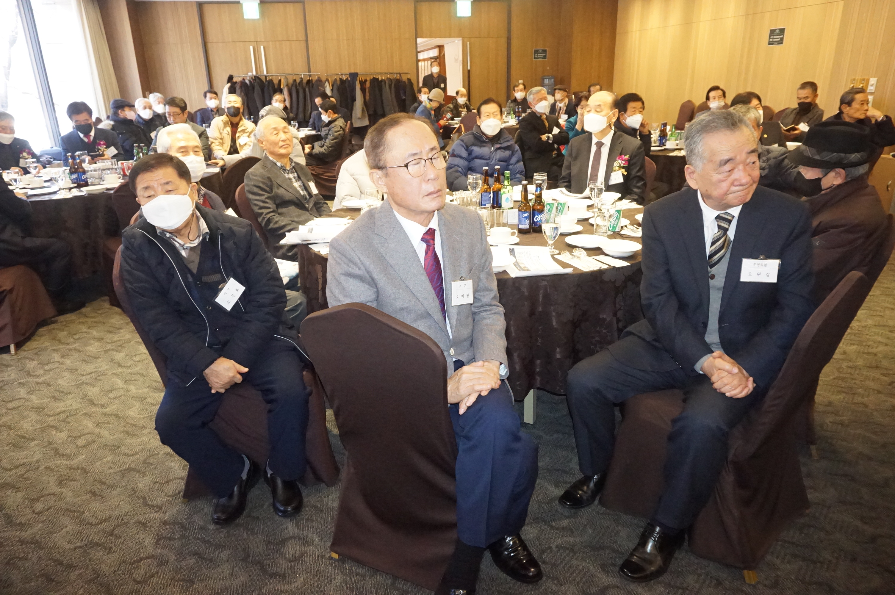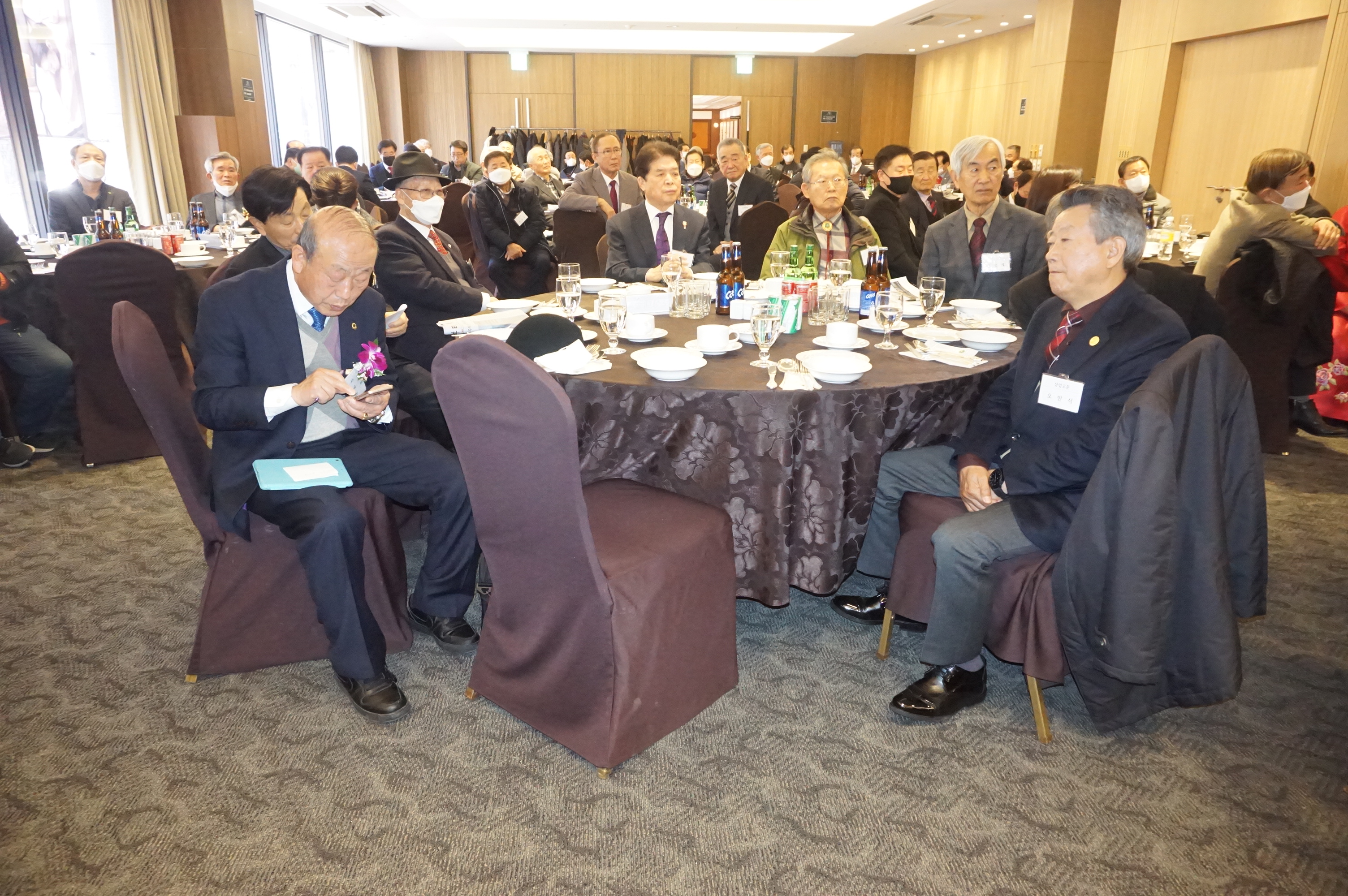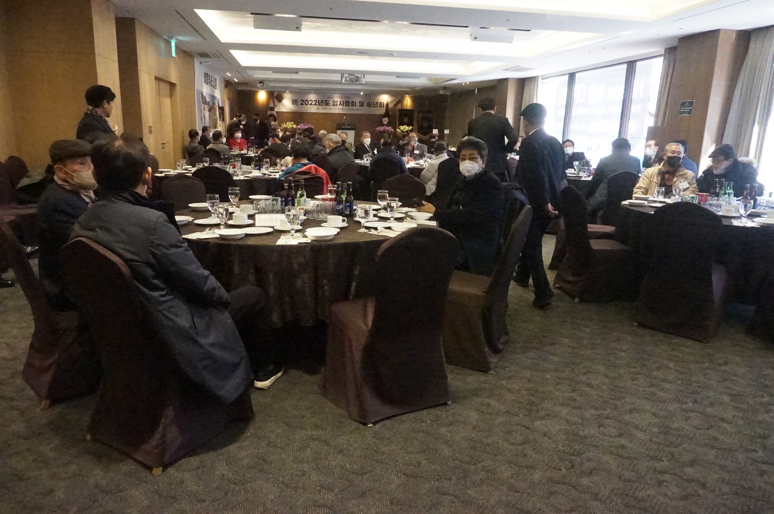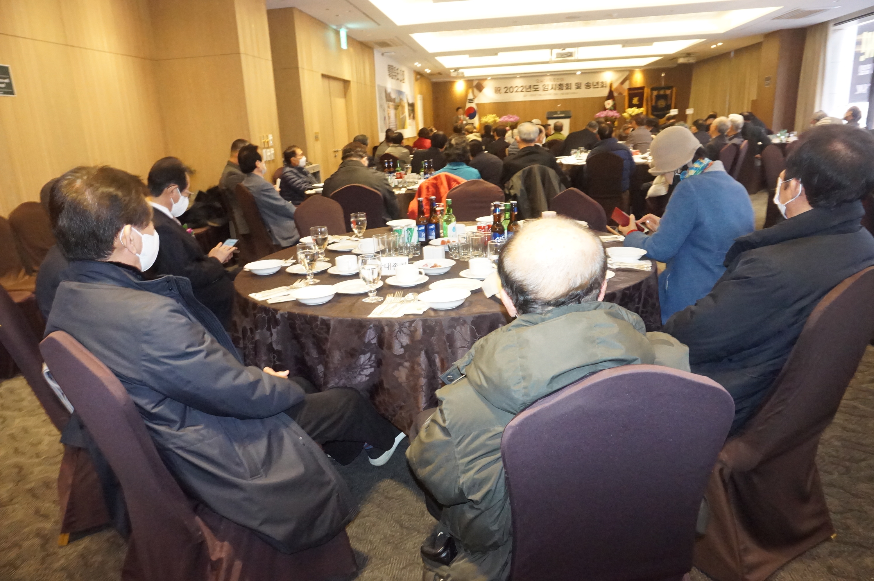 모든 모임의 규제로인해 정해진 규칙아래 업무진행 으로 이어져 오늘 송년회 및 임시 임원회의 를 뜻깊게 생각합니다 .