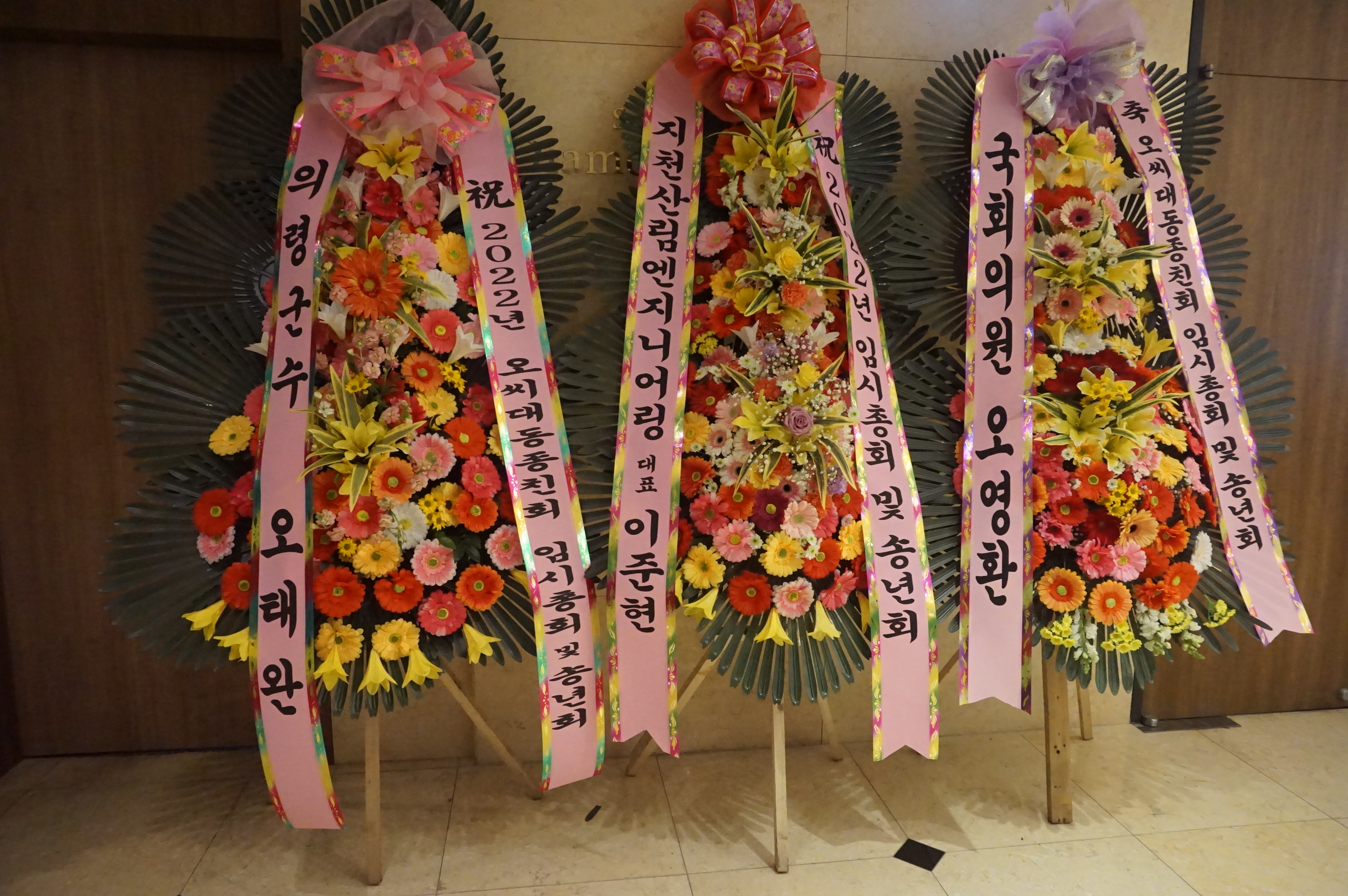 그 위에는 오영우 명예총재 오유근 상임고문 오응준 대전지역 종친회장 오보영 수석 그외 임원 님들께서