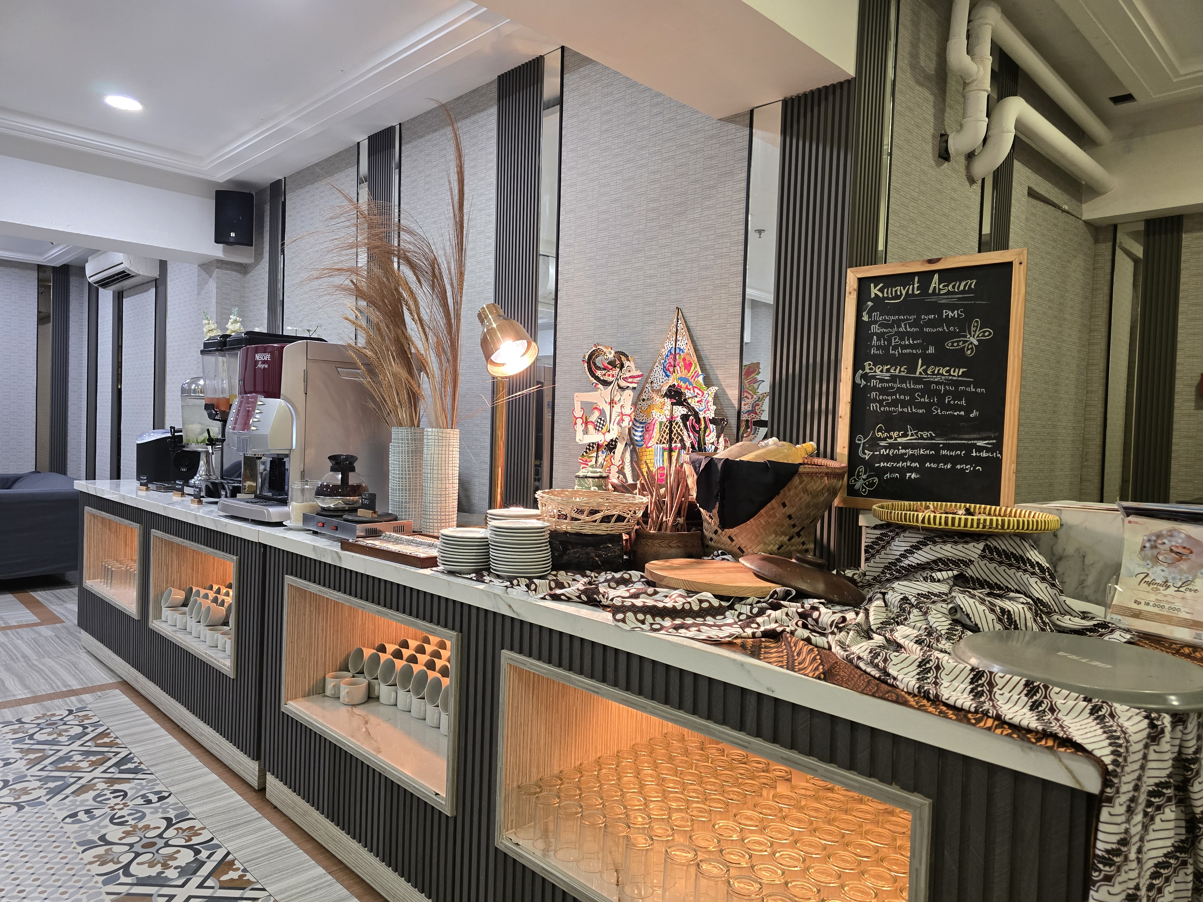 호텔방은 비교적 잘 정비되어 있고 조식도 신선하고 괜찮다. Howard Johnson by Wyndham, Tangerang과는 비교가 되지 않는다. 수영장도 있는데 아쉬운 것은 Gym은 없다. 로비는 넓고 앉을 자리도 잘 마련되어 있어서 차를 기다릴 때 편리하다.