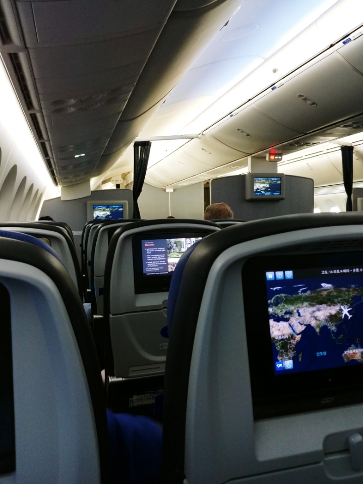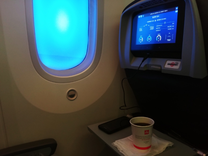 항공사 지상 직원의 배려로 편안한 좌석에 앉을 수 있었다. 더구나 옆의 2좌석이 모두 비워져서 정말 편안히 눕기도 했으니 이보다 더 좋을 수가 있을까?