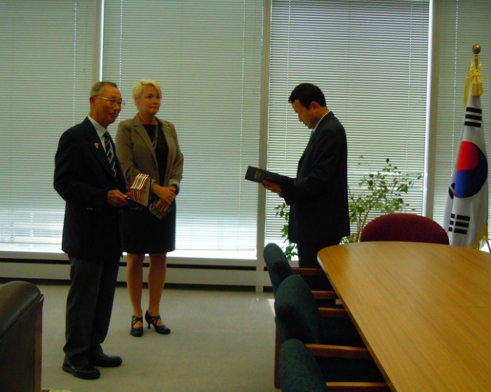 작성자손병헌작성시간12.07.19조회수18 목록 댓글 0평화의 사도 매달 수여 John Herbert Meier (US Army - Resident of Canada) John Clinton Barber (Canadian Army 포병) 2012년초 작고(딸 Mary Jane Barber 대리 수여) Date: 11:30 July 17.2012 Place: 밴쿠버 총영사관