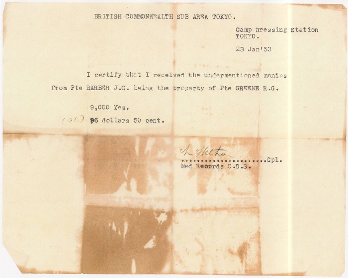 2012년초 작고John Clinton Barber(Canadian Army 포병) 의 유품(한국전 당시)