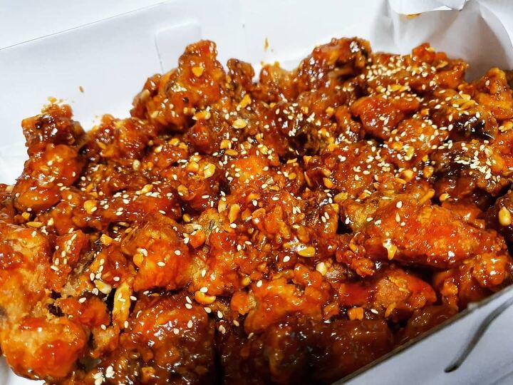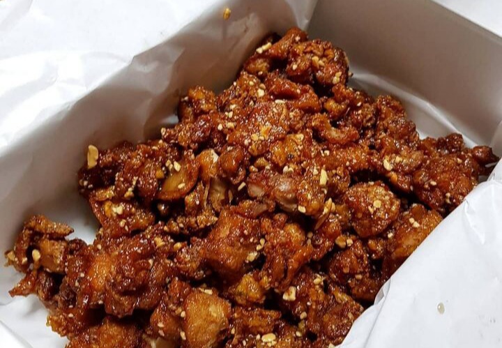 ▲후기(식신 Pikkachu♡): 엄청 바삭한 닭강정! 눅눅한 것 말고 바삭한 것 좋아하면 무조건 추천이다! 매운맛도 골라서 먹을 수 있는데 매운맛 별로 먹어본 사람은 역시나 제일 매운맛이 맛있음...! 땅콩 가루 많이 뿌려줘서 무지하게 고소함!