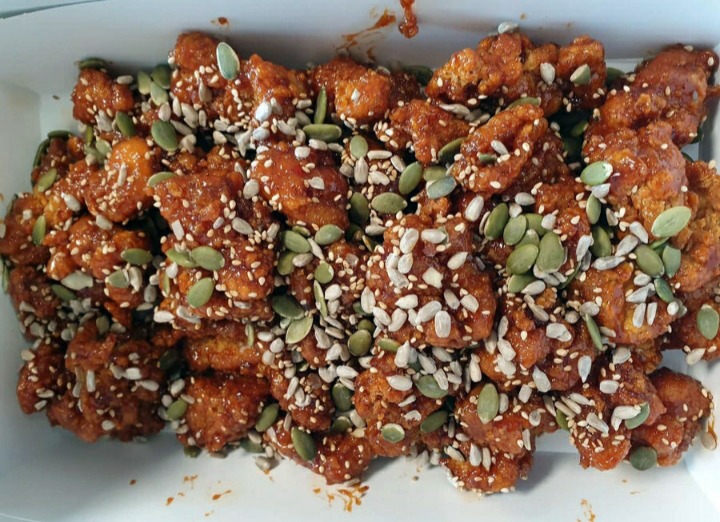 ▲후기(식신 초록색수세미): 메밀로 만든 닭강정이라니.. 뭐 그리 대단할까 싶지만 꽤나 맛있게 먹었습니다. 호박씨와 깨, 해바라기 씨가 엄청 많이 뿌려져 있습니다. 정말 고소해요. 그리고 튀김옷이 좀 다른데, 바삭함보단 쫀득함이 뛰어난 것 같습니다. 추천해요.