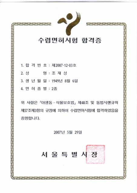 이같이 접수 한후 약 10일 이내에 수렵 면허증을 교부 받는다.