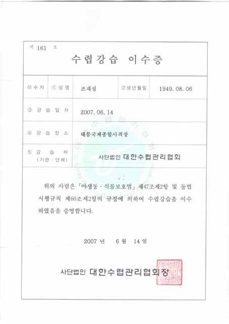 따라서 수렵 강습을 받아 "수렵 강습 이수증"과 "수렵면허 합격증"을 받는다.