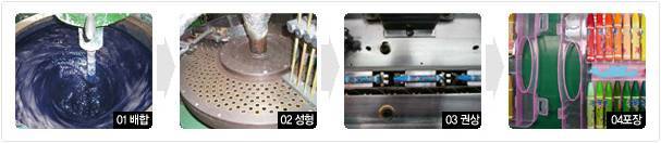④ 포장 : 18색, 24색등의 플라스틱이나 종이케이스에 담는다.