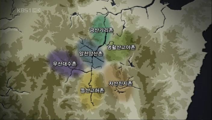 위성 사진으로 보면 그 경계는 뚜렷하게 나타난다. 여섯 개의 산골짜기에 촌을 이루고 살았던 것이다.