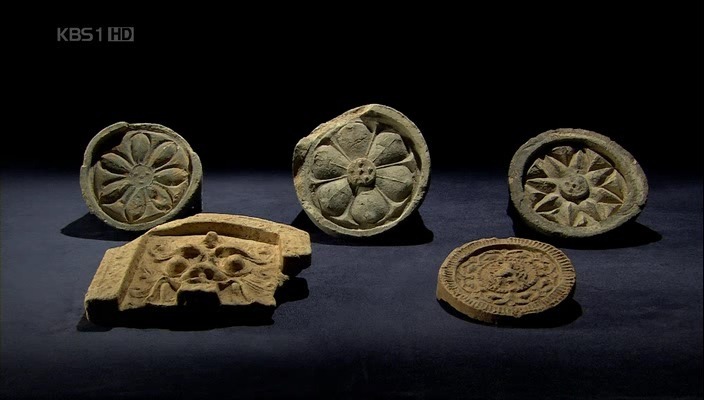 역시 탄생적인 상징의 의미가 내포되지 않았나 이렇게 추정되고 있고, 출토지가 나정 뿐이기 때문에 나정 유적하고 깊은 관련이 있는 문자 기와로 볼 수가 있겠고, 담장에서 많이 출토된 수막새를 보면 8세기 중엽경에 해당됩니다.