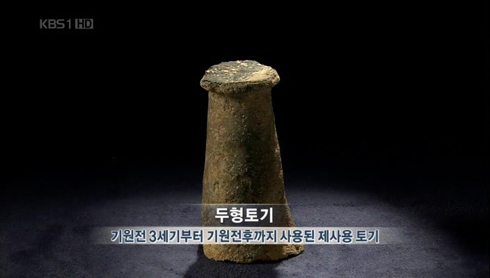 두형 토기는 기원전 3세기부터 기원전후까지 유행하던 제사용 그릇이다. 원래는 굽이 긴 다리에 사발이 얹어진 형태다. 이 두형 토기는 우물지가 기원전후에 사용된 제사용터임을 말해주고 있다.