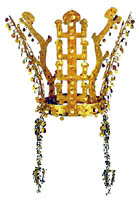 또하나 금관은 예외없이 피장자의 머리쪽에서 발견되는 게 아니라 머리 전체를 감싼 ‘데드마스크’ 형태, 즉 평상시에는 도저히