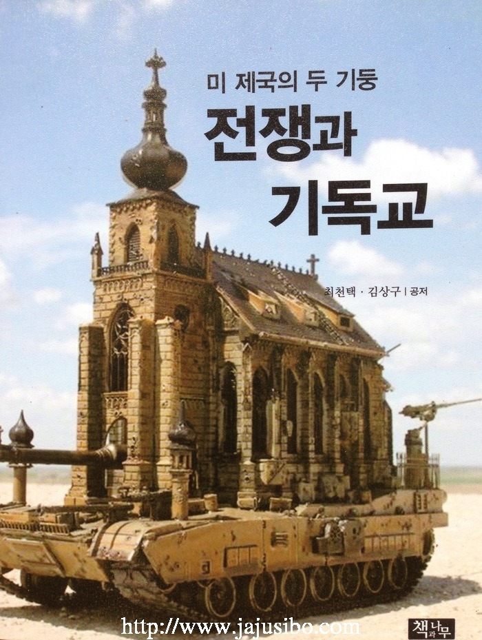 | ▲ 최천택 교수와 김상구 선생이 공동으로 쓴 미국제국주의 역사를 폭로한 제국의 두기둥-전쟁과 기독교의 책표지.