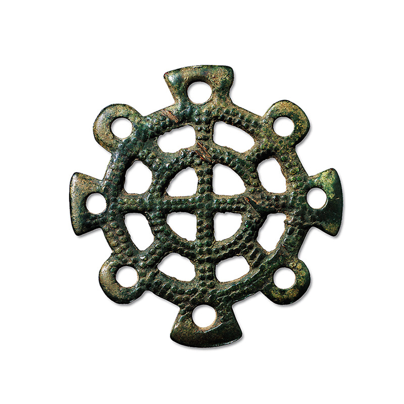 경교(景敎)의 한국 전래 가능성을 보여주는 동제(銅製) 십자무늬 장식이다.