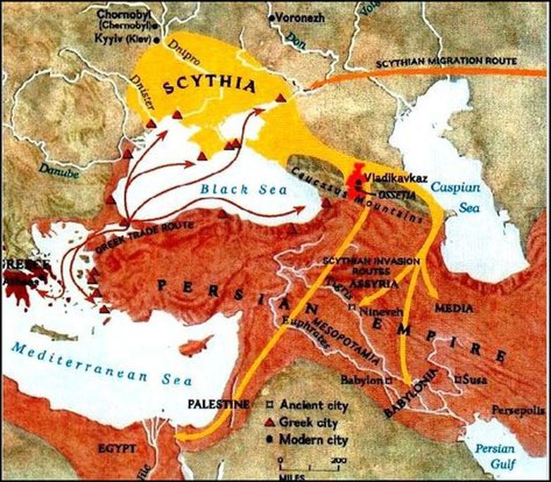구약시대 이스라엘의 예언자 예레미아는 바로 그때 내려온 스키타이를 목격한 것이었다(“보라! 한 민족이 북방에서 오며 큰 나라가 땅 끝에서부터 떨쳐 일어나나니, 그들은 활과 창을 잡았고 잔인하여 자비가 없으며 그 목소리는 바다가 흉용함 같은 자라. 그들이 말을 타고 전사같이 다 항오(行伍)를 벌이고, 딸 시온 너를 치려 하느니라!”-예레미야 6장 22~23절).