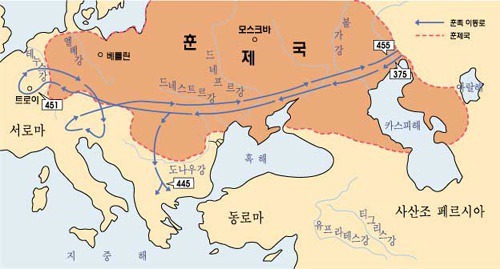 훈족은 흉노(匈奴, 북방 기마 민족을 통칭한다)의 한 분파로, 기원전 3세기부터 서기 4세기까지 약 700년간 중원 지역을 놓고 중국과 각축전을 벌였다. 이 과정에서 흉노는 끊임없이 부침을 거듭했다. 이때 흉노에 속해 있던 한민족 원류 중 일부가 서쪽으로 진출하면서 훈족으로 성장했고, 또 한 부류는 한반도 남부지역까지 진출해 현재의 한민족의 일부가 되었다는 것이다.