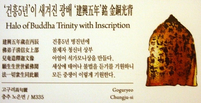 사유(斯由), 또는 유(劉), 또는 쇠(釗)라고 하면서도 몇째 아들인지에 대해서는 아무런 기록이 없다. 이에 반해 <고구리사초략>에는 고국원제는 미천대제의 셋째 아들로 주유극(朱留克)이라는 이름이 하나 더 있고, 키가 크고 몸도 우람했으며 풍채는 수려했고 학문하기를 좋아했다. 성품이 관대하고 후해 백성을 아끼고 효와 우애로 정이 두텁고 화목했으며, 또한 말 타고 활쏘기를 잘했고 용병하기를 좋아했다. 모친 주(周)씨를 태후로, 태자비 전(腆)씨를 황후로, 장자 완(完)을 황태자로 삼았으며, 나라 안에 널리 사면령을 내렸다. 선황의 뜻을 이어받아 남정서벌(南征西伐)을 자신의 임무로 여겨 항상 군진의 선두에 서서 몸을 앞장 세웠다가 끝내는 흐르는 화살을 맞고 붕어하시니, 나라사람들이 이를 애통히 여겨 국강상왕(國罡上王) 또는 작은 을불(小乙弗)이라 불렀다고 상세히 기록되어 있다. 참고로 젊은 나이에 안타깝게 붕어한 위대한 정복군주 광개토태왕의 시호가 ‘국강상광개토경평안호태왕(國罡上廣開土境平安好太王)으로 앞에 국강상이 들어간다. 간략하게 풀이하면 나라의 북두칠성과 같은 분으로 영토를 크게 넓혀 평안한 세상을 만드신 호태왕이라는 뜻일 것이다. 광개토경은 업적을 말하는 것이므로 평안호태왕 하던가 그냥 호태왕이라고 해야 맞는 것이다. 주(周)태후의 부친인 선방의 조상은 오(吳)나라 사람으로 동천제(東川帝) 때 귀화해 공주와 혼인했고, 마산(馬山)에서 여러 대에 걸쳐 선인(仙人)직을 지내다가 미천대제를 옹립하여 공신이 되었다. 이후 승진을 거듭해 태보(영의정)까지 오르고, 나라의 근심거리였던 낙랑을 정벌하고는 낙랑의 왕으로 봉해진 인물이다. 선방은 딸 거지(居知)를 미천제에게 후궁(소후)으로 바치고, 거지는 주씨 성을 하사받고는 총애를 독차지해 311년에 태자 사유를 낳는다. 사유는 흰 소의 운세를 타고 났으며 용모는 으뜸가는 위용이 있고 목소리는 큰물처럼 밝았더니, 상이 “이 애가 진짜 용의 종자로다.”라고 크게 기뻐하며 삼보와 군신들에게 연회를 베풀어주었다고 한다. 주씨는 곧 황후가 되고 314년에 아들 무(武)를 낳자, 3살인 사유가 태자에 봉해진다. 중국기록에 황제(소열제)로 기록된 고국원제 춘추필법에 의해 역사를 기록한 중국사서와 이를 참고해 편찬한 <삼국사기>에서는 고구리의 임금들을 칭제건원(稱帝建元)하지 않은 그냥 ~~왕으로 기록했다. 그런데 중국의 수서(隨書)에 유일하게 “위궁(산상태왕)의 현손은 소열제(位宮玄孫之子曰昭烈帝)라고 말한다.”라고 칭제했다는 기록이 있다. 그런데 이 문구가 최근 사실이며, 게다가 소열제(고국원제)만 황제가 아니라, 고구리의 임금들 대부분이 자체연호를 쓴 황제였다는 사실도 밝혀진 것이다. ① <태백일사>의 고구리 건원칭제 기록 고구리 임금들이 자체연호를 쓴 황제였다는 기록은 <태백일사 고구리국본기>에서 일부 찾을 수 있다. 물론 28대 모든 임금의 연호가 기록된 것이 아니라, 8명의 임금이 건원칭제했다는 사실을 내용에서 찾을 수 있다. 우리 역사를 스스로 비하하기를 좋아하는 강단사학계는 ‘<환단고기>는 위서’라고 하며 이러한 사실을 인정하지 않는다고 했으나, 국내에서 출토된 유물로 인해 이들의 주장이 허구라는 것이 명백하게 입증되었다. 아래 도표는 ~~왕이라고 기록한 <삼국사기>와 고구리는 자체연호를 사용한 황제국이었다고 기록한 <태백일사>를 비교해 놓은 것이다. 아래 8개의 연호 중 광개토태왕의 연호 ‘영락’은 집안에 있는 호태왕비문에 나와 있으며, 장수태왕의 연호 ‘건흥’은 1915년 중원고구리비 근처에 있는 사찰에서 발견된 ‘건흥5년명 금동석가삼존불’의 광배 후면에 명문으로 새겨져 있어 이 기록의 사실성이 입증되었다고 할 수 있다.