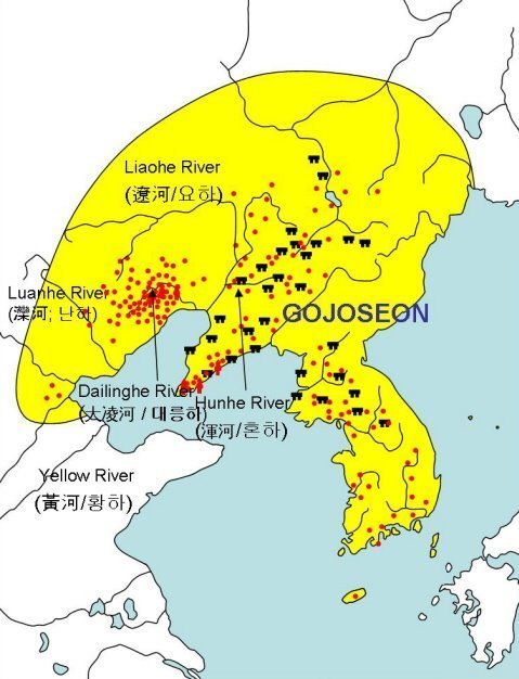 고조선의 유물분포지역이다. 누가봐도 고조선의 핵심강역은 지금의 대릉하일대로 보인다. 일부 돌팔이 학자들은 지금의 요녕성 요하동쪽이 핵심강역이라고 하고 일부는 북한 평양시라고 하는데 황당하기 그지없다.