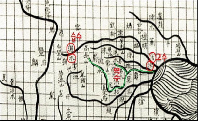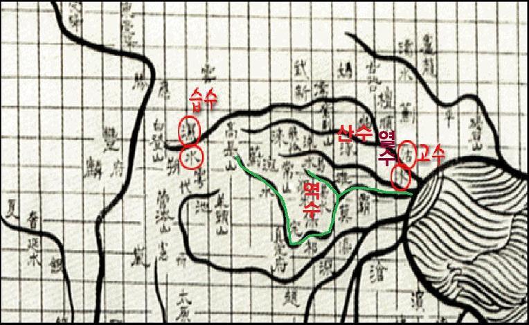 송나라시대 우적도라는 고지도에 따르면 산수는 당연히 습수와 합쳐지는 강이고 지금의 영정하의 지류로 봐야한다. 즉