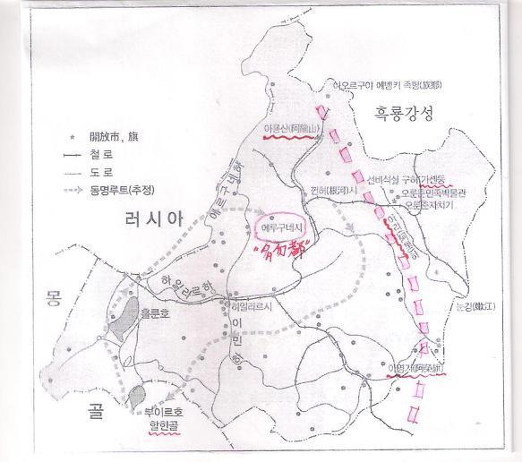 북대흥안령 호눈(呼嫩)평원 아리령(阿里嶺) 고개 추정도