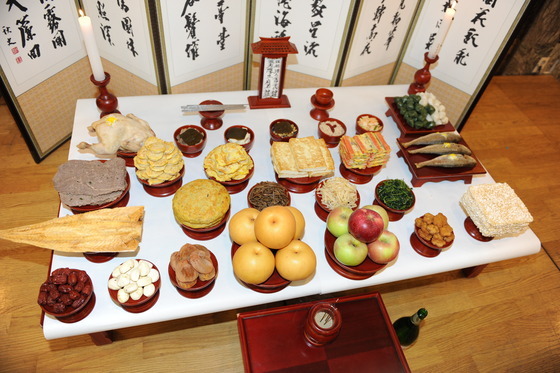 시접거중 : 수저를 담은 그릇은 신위의 앞 중앙에 놓는다.