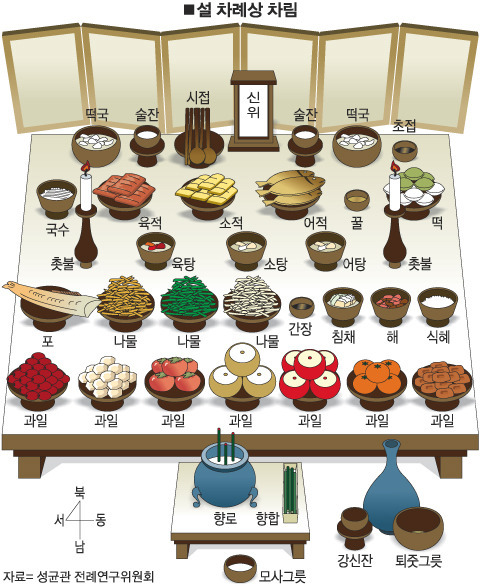 ※ 차례상 차리는 방법은 지역이나 집안 풍습에 따라 차이가 있고