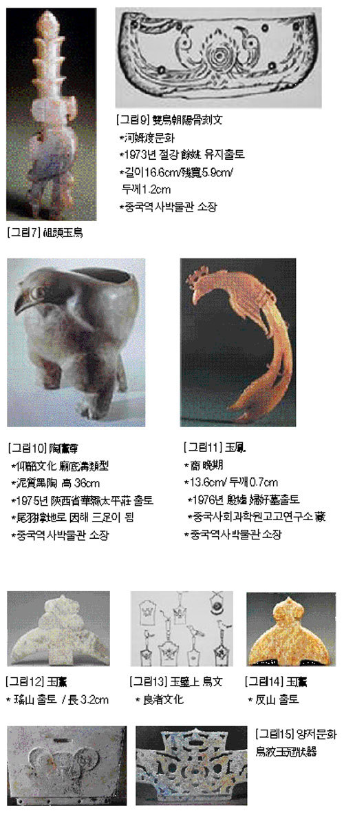 그것은 인간의 손이 재가공하지 않은 땅속의 생생한 당시의 발언이기 때문이다. 역사의 주체에서 밀려나 한족에 의해 가려지고 사라진 동이의 역사는 지하에서 들려오는 발굴 소리에 귀를 바짝 기울이고 긴장해야 한다. 새 숭배사상의 원류는 동북방 紅山文化, 장강 하류의 河姆渡文化와 그 후신인 良渚文化, 한반도와 지형적으로 가장 가까운 위치에 있는 산동반도의 신석기시대 大汶口文化 및 그 문화를 승접한 龍山文化 등에서 출토된 동이문화의 풍부한 물징들을 검색한 후, 다시 『三國志』 「魏志·東夷傳」보다 앞선 문징들을 통해 새 숭배사상의 원류와 상징성을 溯源해 체계 있게 살펴봐야 할 것이다.