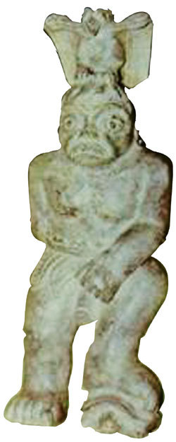 [그림 8]은 새와 남성생식숭배를 토템화한 玉神人이다(魏昕 所藏, 柳冬靑 ,『紅山文化』, 내몽고대학출판사, 2002, 28쪽). 거대한 남근을 드러낸 神人이 頭上에는 솔개와 올빼미의 관을 얹고 왼쪽발로는 거북을 밟고 있는 형상이다. 솔부엉인 치효는 天精(日精)의 상징이며 거북은 地靈의 상징이다. 고대유물에 나타나는 새와 거북(또는 물고기)은 대부분 천정지령의 심볼로 결국 음양조화의 고대적 표현이라 할 수 있다. 강우방 교수는 우리 고대문화의 미적 원리가 모두 靈氣에서 시원된 것이라고 단정했는데(『한국미술의 탄생』, 솔, 2007), 天이 가진 기운을 ‘精’이라 하고, 땅이 가진 기운을 ‘靈’이라 하기 때문에, 그의 이론에는 우리문화 母型의 원리인 하늘기운의 작용을 배제한 논리적 모순이 발견된다. 검토가 필요한 대목이다. 한반도의 선주민이기도 했던 동이는 先秦시기엔 지금의 산동동부, 淮河 중하류의 강소, 안휘 일대 및 발해연안에 군락하고 있던 각 민족을 범칭한 말이다.