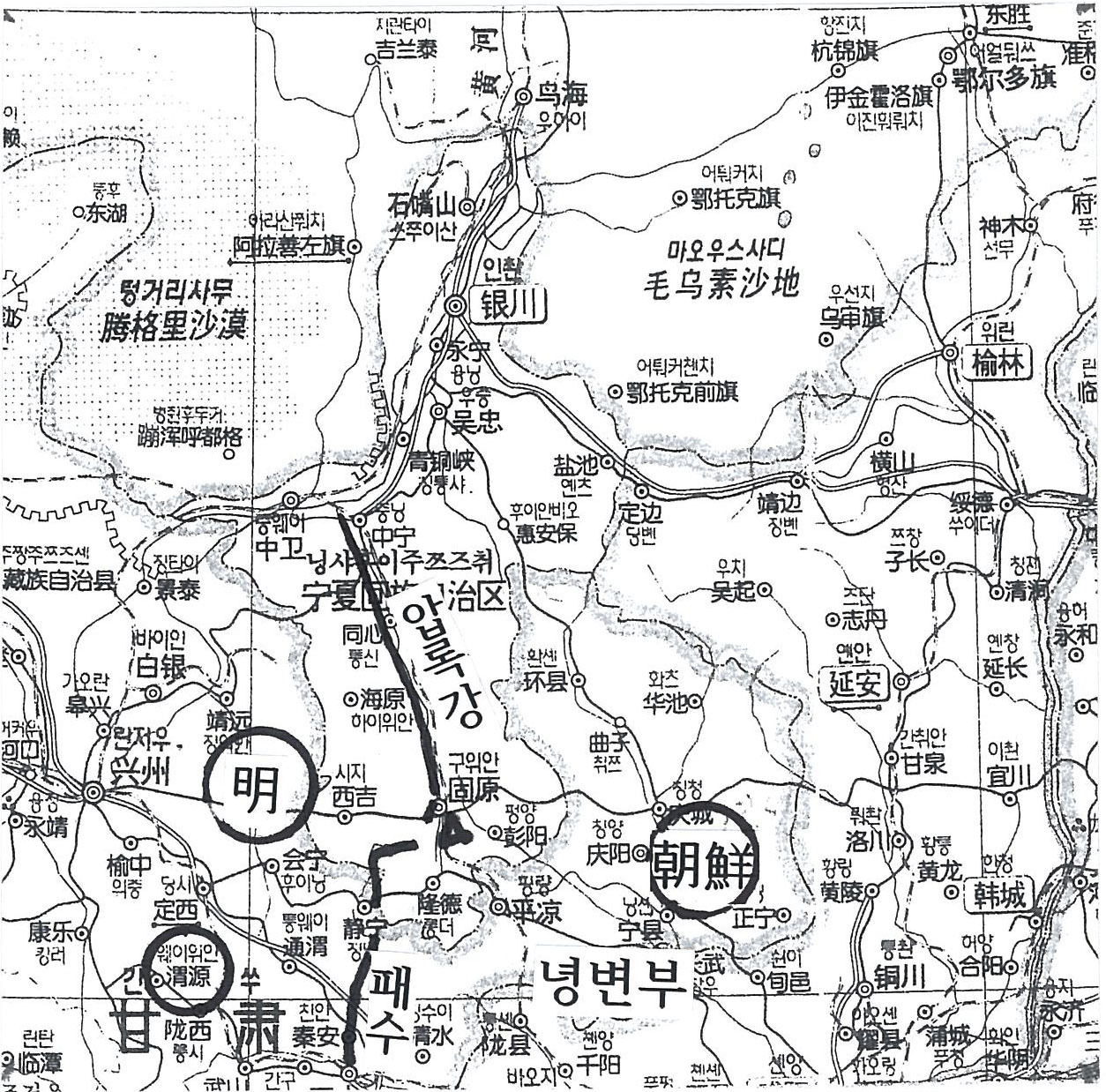 "녕변부(寧邊府)서쪽은 위원(渭源)지역인데 명나라 이성량의 조상무덤이 있다"