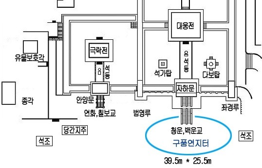 발굴조사를 통해 청운교와 백운교 정남쪽에 있었던 것으로 밝혀진 구품연지는 동.서 길이 약