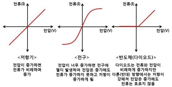 전구의 경우 전압이 커지는 만큼 전류가 흐르지