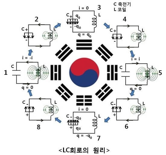 직류(DC)는 높은 전압을 생성할 수 없으므로, 교류(AC)처럼 음(陰,-)과 양(陽,+)의 위상차가 뚜렷할때 높은 기전력을 일으킬 수 있습니다. 이때 전기장과 자기장이 형성되므로 전자와 빛은 서로 음양순환(循環)의 원리에 따라 서로 다르면서도 또한 서로 같은 존재로 남아서 순환대칭(soonhwan symmetry, 물리학의 새로운 대칭성)을 이룹니다.