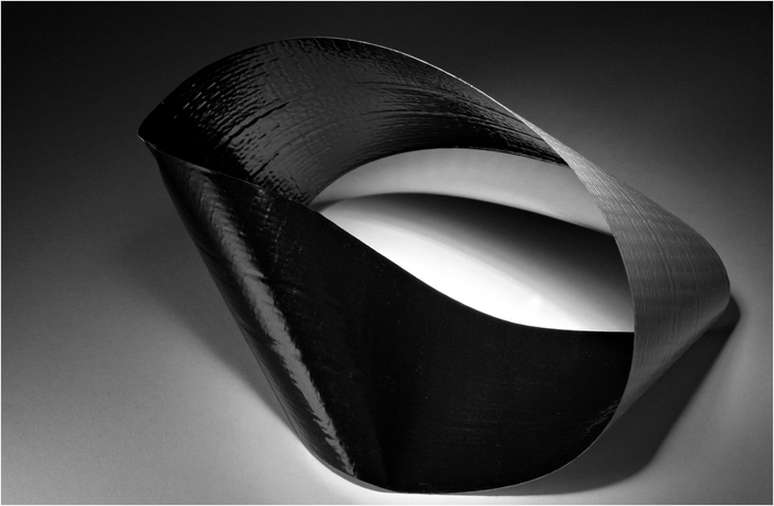 고리 중간을 한 번 꼬아 안과 밖이 구분되지 않도록 한 뫼비우스의 띠. 수학시간에 다들 한 번쯤은 배웠을텐데요. 신발끈을 묶거나 카세트 테이프의 양면에 녹음할 때, 순환을 상징하는 재활용 마크에도 이 뫼비우스의 띠가 적용되었답니다.