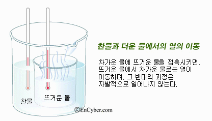 열역학 제2법칙에 관한 클라우지우스의 기술; 열은 스스로 차가운 물체에서 뜨거운 물체로 옮겨갈 수 없다.